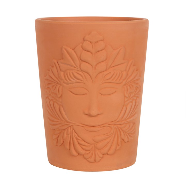 This terracotta plant pot features the face of a leafy Green Goddess, also called the Green Woman, Green Lady or Mother Earth, a pagan symbol of growth, fertility and rebirth. Perfect in size for mid-sized house plants and flower bouquets and makes a great gift for Mother’s Day, birthdays, teachers and gardeners. Drainage hole on bottom. Product Dimensions: H16cm x W12.5cm x D12.5cm Packaged Dimensions: H17cm x W13cm x D13cm