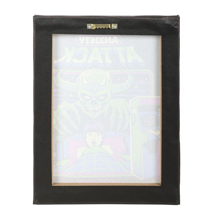 Welcome to level one of your daily existential crisis. This Anxiety Attack stretched canvas wall plaque by Steven Rhodes turns bedtime dread into a retro arcade nightmare where panic has claws and a high score.19x25cm. Sawtooth hanger on reverse. Officially licensed and part of the Steven Rhodes collection of iconic retro gifts.