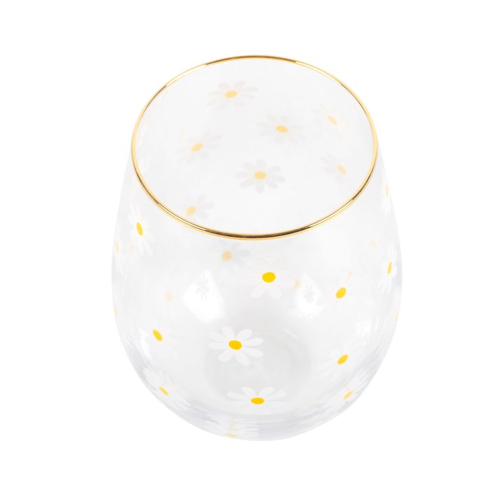 Cheerful and understated, this charming stemless glass features an all-over daisy print and a gold-tone rim. Great for springtime and happy gatherings in the sunshine, this glass makes a great gift for all occasions. 500ml capacity. Hand wash only. Do not microwave.