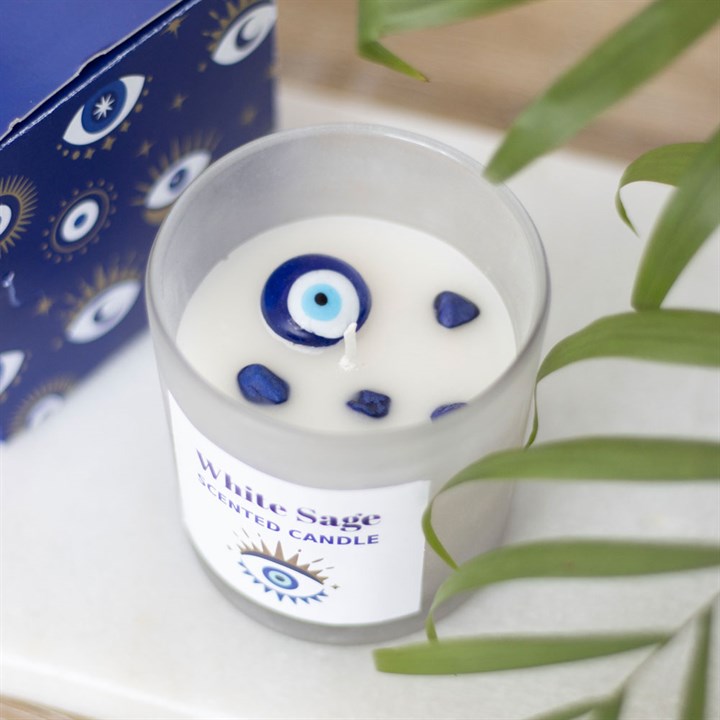 All Seeing Eye White Sage Crystal Chip Protection Candle