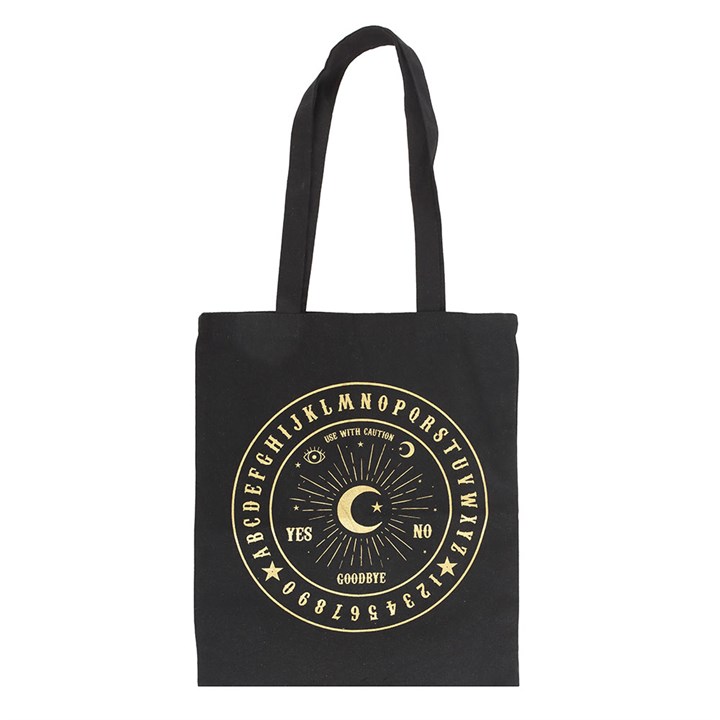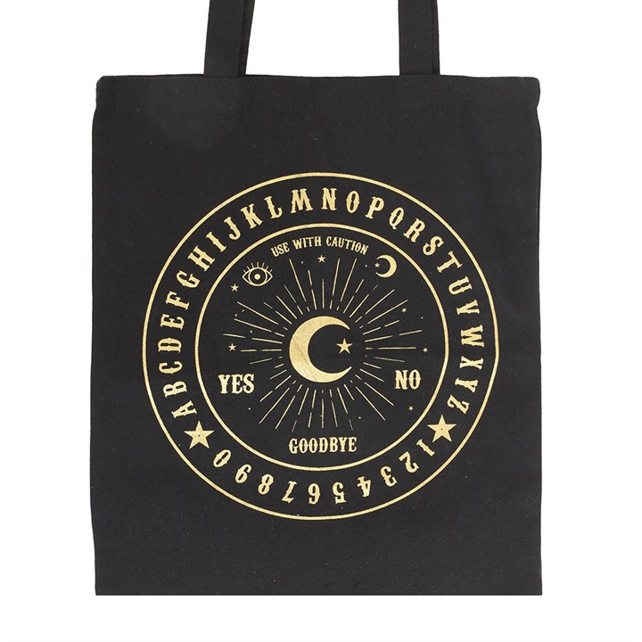 Perfect for doing the weekly shop, carrying library books, holding essentials for short day trips and more, this polycotton tote bag makes a great eco-friendly addition to anyone’s collection. Features a gold round talking board design printed on black, inspired by classic spirit boards. 95% Polyester with 5% Cotton.
