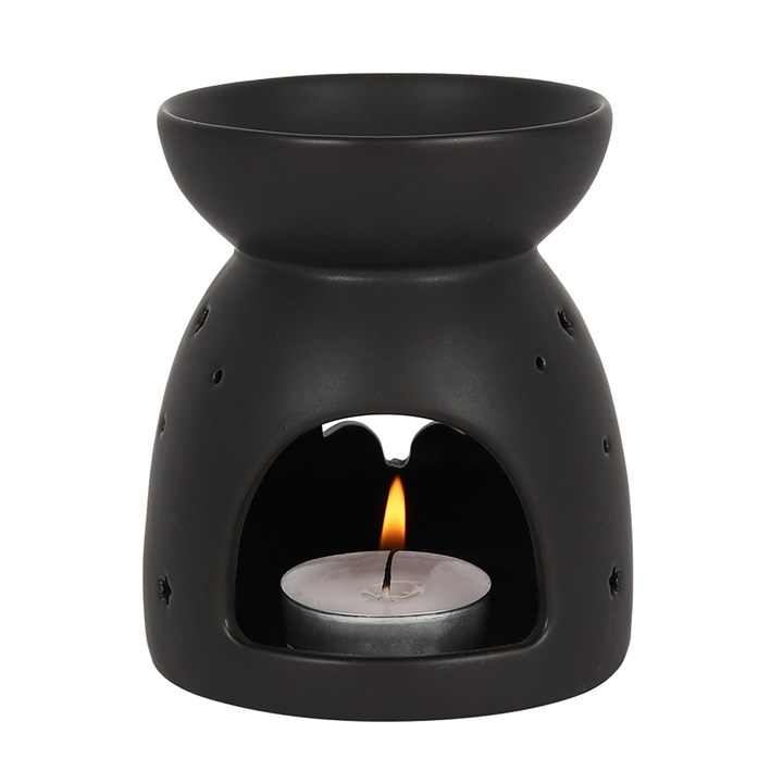 This black ceramic oil burner features a cutout bat design and a cool, matt finish. Compatible with both fragrance oil and wax and perfect for Halloween or spooky decor! Product Dimensions: H10cm x W9cm x D9cm Packaged Dimensions: H12.5cm x W11cm x D11cm