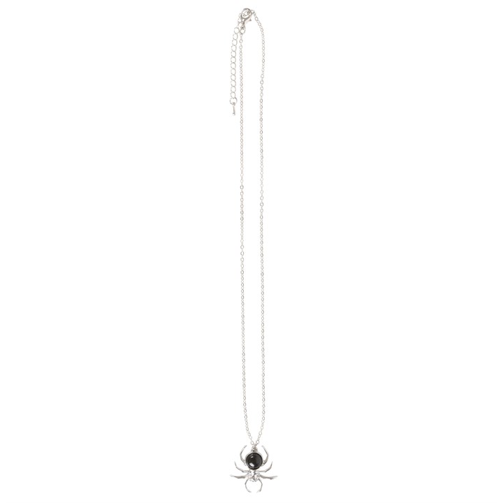 Add a little spooky to your style with this spider necklace crafted from stainless steel and featuring black obsidian details. Appearing as if dangling from a thin thread of web, this necklace is equal parts elegant and eerie.