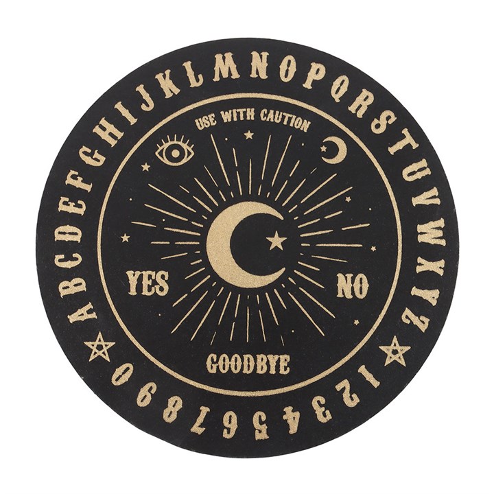 Store precious necklaces, rings and bracelets in this black jewellery box, decorated with a mystical talking board design in a gold finish. The jewellery box features a handy mirror in the lid – perfect for checking if accessories match the look! As well as offering safe keeping for your treasures, this jewellery box is perfect for displaying on dressing tables or bedside tables as a finishing touch to bedroom decor.
