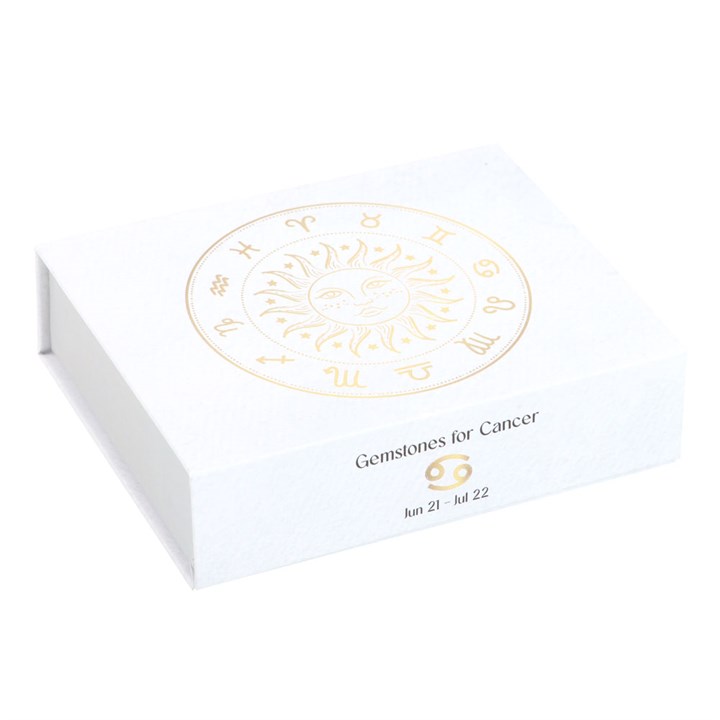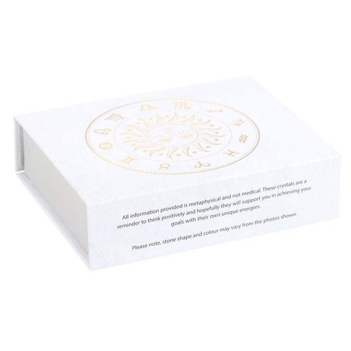 This stunning set of five crystal tumblestones are perfect for the compassionate, sensitive and loving Cancer. Designed to enhance and balance the unique traits of Cancer individuals, by combining the harmonising power of crystals with the innate qualities of this Water sign. The set includes Rose Quartz for unconditional love, Moonstone for new beginnings, Red Jasper for protection, Yellow Jade for wisdom and Green Aventurine for opportunity. Beautifully presented in a magnetic closure gift box with information regarding each crystal, and a velvet drawstring bag to keep the tumblestones protected.