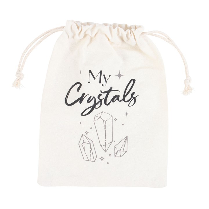 Keep crystals and tumblestones safe and tidy with this cotton drawstring storage bag. Features a sparking crystal design and ‘My Crystals’ text that’s a must-have for any witch.