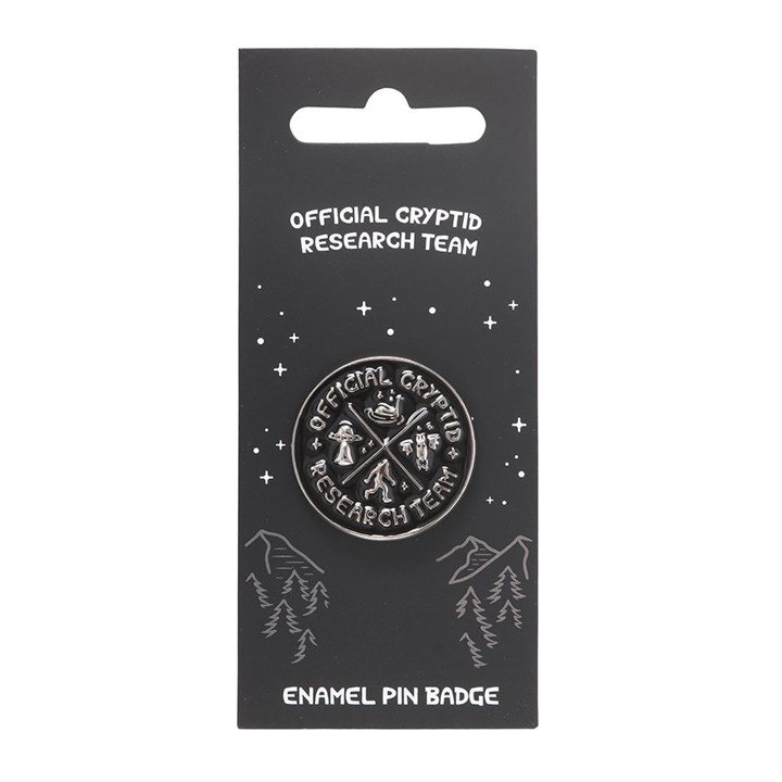 Show your official status as a seeker of the strange with this Cryptid Research Team enamel pin badge. Whether you’re tracking Bigfoot or spotting flying saucers, this badge has your back.