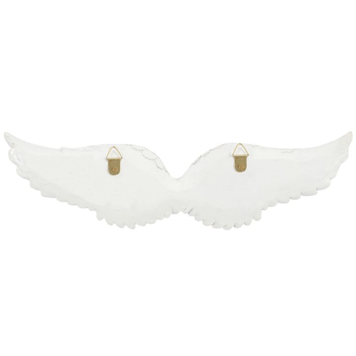 These beautiful white angel wings will look lovely in the home at any time of year. The wings are covered in clear glitter flakes which give a stunning sparkly finish when the light catches them. On the reverse of the wings there is a hook for hanging on each end. Product Dimensions: H7cm x W28cm x D4cm Packaged Dimensions: H7cm x W28cm x D4cm