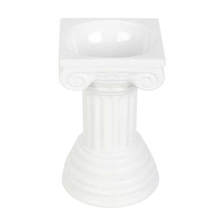 Create a Grecian-inspired aesthetic in any space with this Greek Column Oil Burner and Wax Warmer. Designed to resemble a classic Greek column, this stunning piece is both timeless and elegant. Simply place a single standard tealight in the back of the burner and add a few drops of diluted fragrance oil or wax melts in the bowl. Pair with a soothing fragrance to create a serene atmosphere.