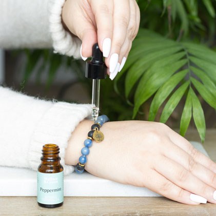 This inner peace lava bead bracelet and essential oil gift set uses aromatherapy to enhance the metaphysical healing power of crystals. Crafted with natural blue lace agate and lava beads, the bracelet serves as a diffuser for the included peppermint oil, promoting stress reduction and boosting energy. The addition of the tree of life charm symbolises growth and harmony, offers tranquility and serenity on the go. Crafted with durable materials and packaged in a luxury gift box, this elasticated bracelet combines beauty and functionality, offering a thoughtful present for various occasions.