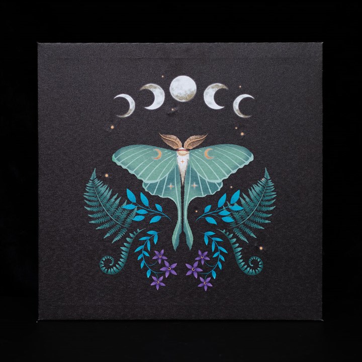 Add a touch of magic to your space with this 30x30cm light-up wall canvas. Features an ethereal luna moth illustration with embedded LED lights to create a mesmerizing glow. Requires 2 x AA batteries.