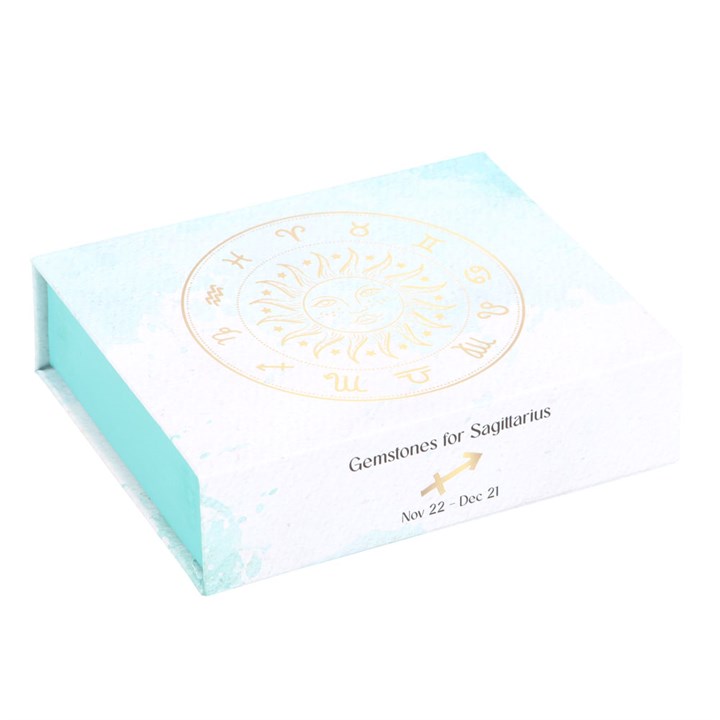 This stunning set of five crystal tumblestones are perfect for the optimistic, lively and fair-minded Sagittarius. Designed to enhance and balance the unique traits of Sagittarius individuals, by combining the harmonising power of crystals with the innate qualities of this fire sign. The set includes Blue Turquenite for relaxation, Sodalite for intuition, Amethyst for peace, Lemon Quartz for clarity and Amazonite for love and loyalty. Beautifully presented in a magnetic closure gift box with information regarding each crystal, and a velvet drawstring bag to keep the tumblestones protected.