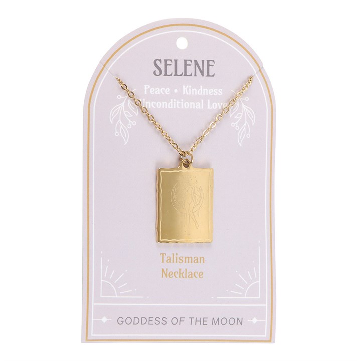 Elegant, timeless and meaningful, this ethereal Talisman necklace will bring serenity and intuition to the wearer. Featuring a beautifully detailed gold-toned pendant inspired by the goddess Selene, this necklace is a symbol of inner peace and spiritual strength. Presented on a matching backing card, it makes a thoughtful gift or a personal reminder of the goddess within. Necklace is nickel-free stainless steel.