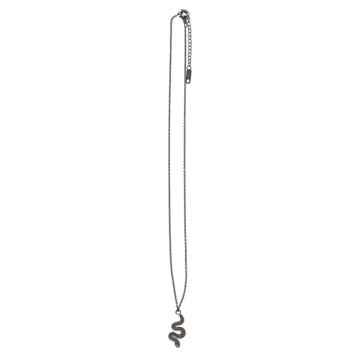 This dark and elegant necklace features a delicate snake pendant in a cool black finish. Presented on a floral backing card and perfect for gifting. Nickel-free stainless steel.